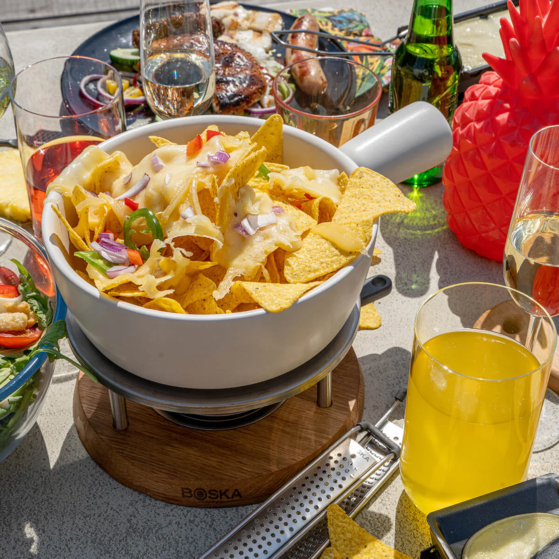 A stílusos megjelenésű és praktikus kialakítású Bianco fondükészlettel bármikor meglepheted a kedvesedet, barátaidat egy mennyei fogással. A fondü ideális választás a legtöbb hétköznapi helyzetben, legyen az összebújós filmnézés vagy vidám társasozás, hiszen bár egyszerű elkészíteni, mégis mindenki megnyalja utána mind a tíz ujját. A Bianco szett mindent tartalmaz – a sajton kívül, természetesen –, amire szükség van: egy kerámiamasszív tálat a hozzá tartozó melegentartó aljjal, továbbá négy fondüvillát. Szerezd be otthonra, vagy válaszd ajándéknak egy különleges alkalomra!